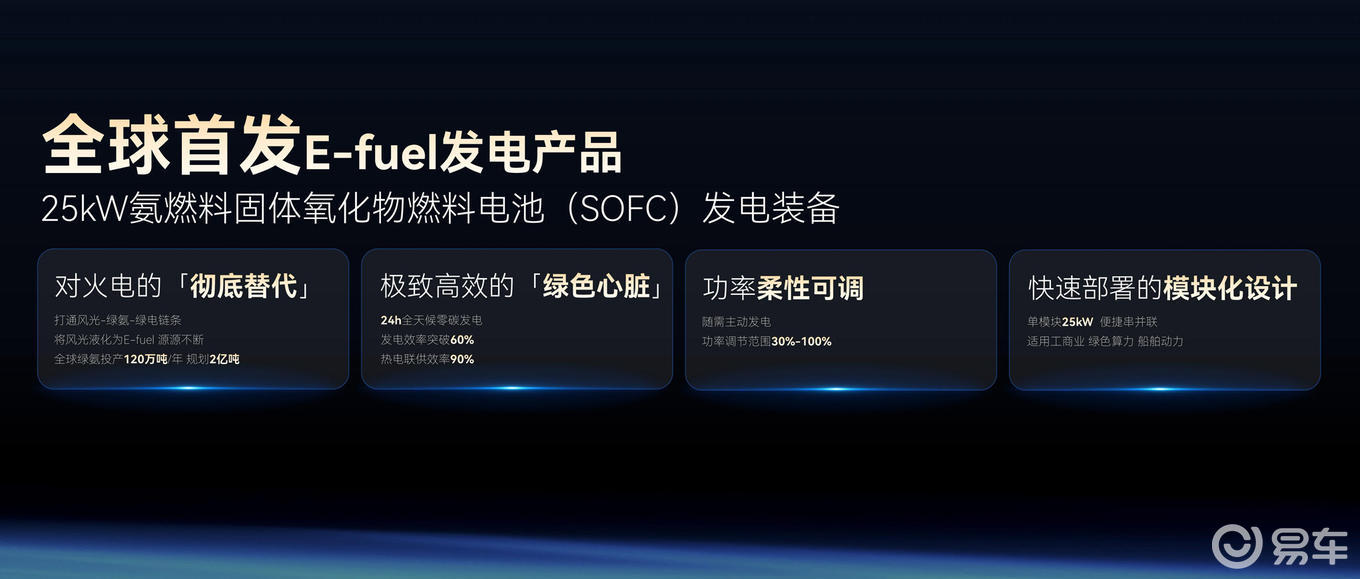 在前端,奇瑞计划到2030年将绿色零碳工厂由目前的7座增至25座;2028年落成全球首座100%绿色能源制造的离网型E-Fuel长时储能零碳示范园区;推出E-fuel发电产品,将风光绿电液化为绿氨,实现对火电的替代。