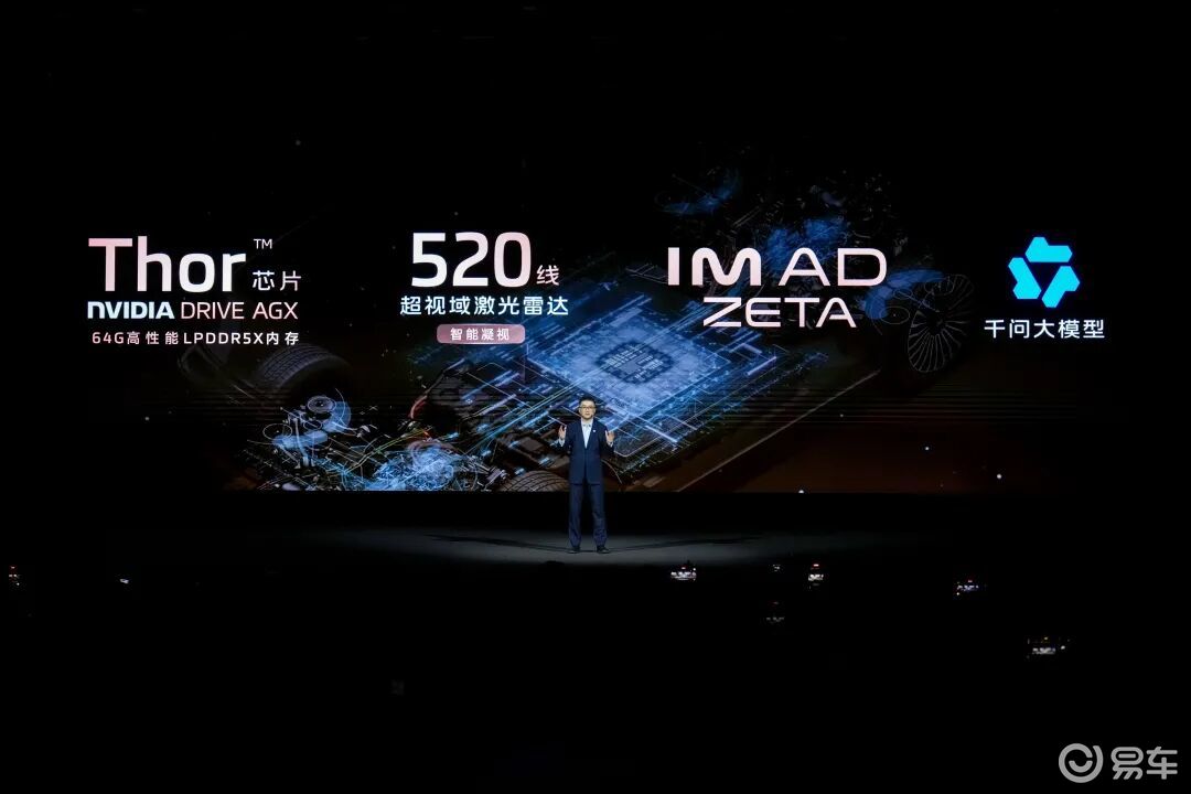 硬件方面,智己 LS8 的产品定位虽然落在 30 万元以内,但搭载的一系列硬件均看齐市面上的顶级水准,比如英伟达 Thor 芯片、520 线激光雷达。
