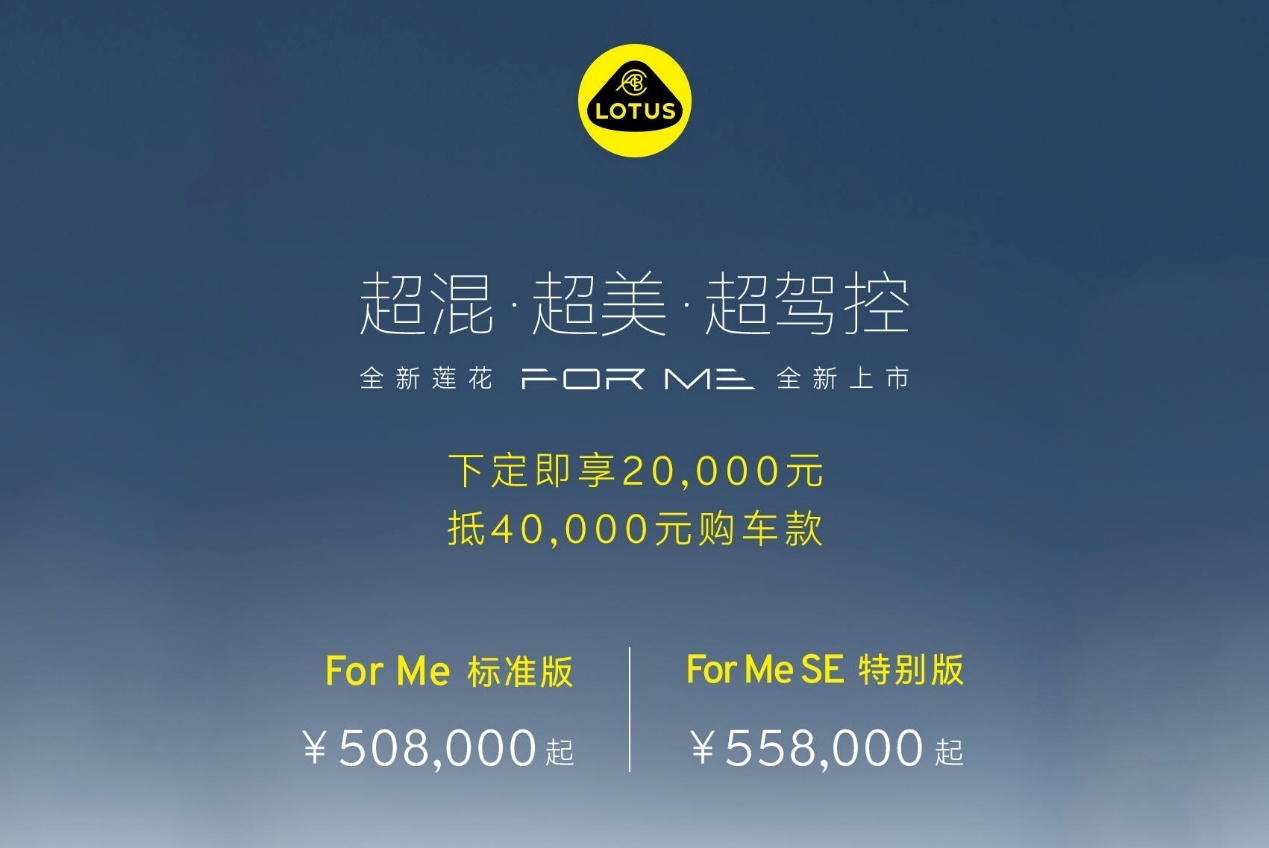 3月29日,超跑SUV莲花FOR ME正式上市,并于次日开启全国交付。新车共推出2款车型,官方指导价区间为50.8万-55.8万元,限时售价为48.8万-53.8万元。作为品牌首款搭载路遥超级混动架构的量产车型,新车基于900V高压平台打造,采用2.0T双电机插混系统,0-100km/h时间为3.3秒,CLTC纯电续航里程420km,底盘标配闭式双腔空气悬架、双阀CCD减振器、6活塞固定式卡钳。