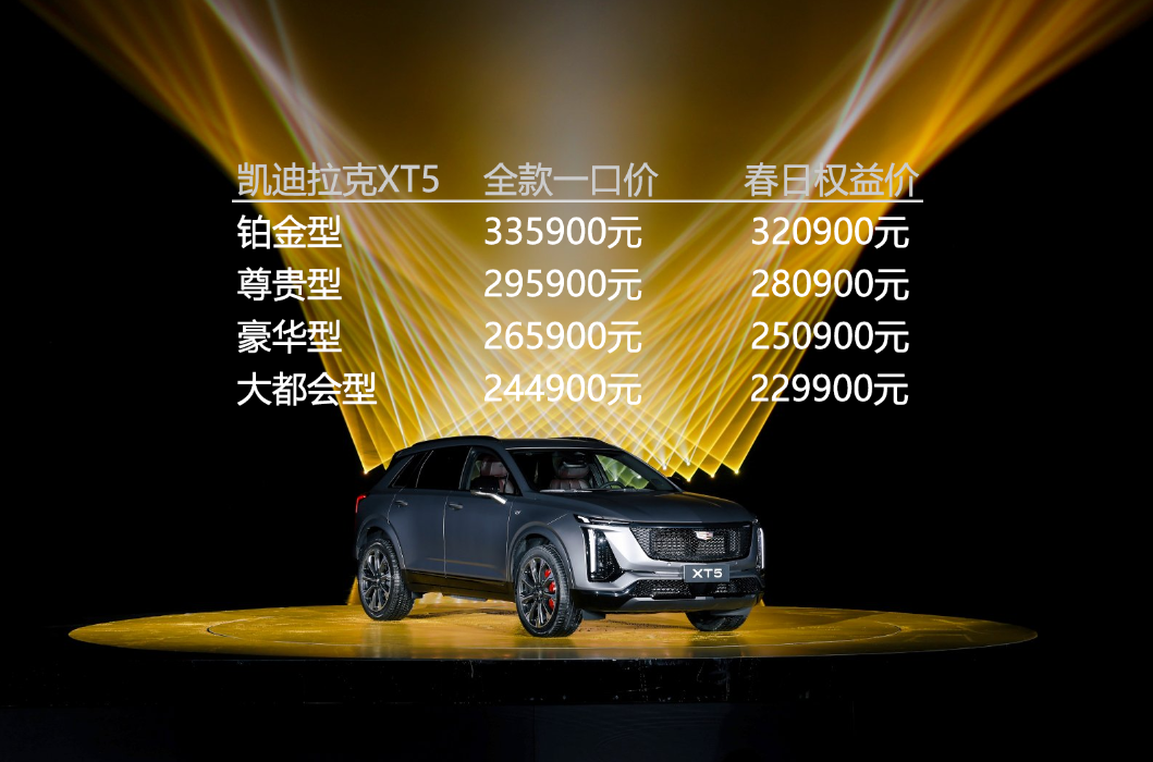凯迪拉克XT5全款一口价24.49万至33.59万元,多重权益叠加后,春日限时权益价仅需22.99万至32.09万元。透明定价配合高额补贴,凯迪拉克以务实姿态重新定义了豪华中型SUV的性价比天花板,让越级体验不再遥不可及。